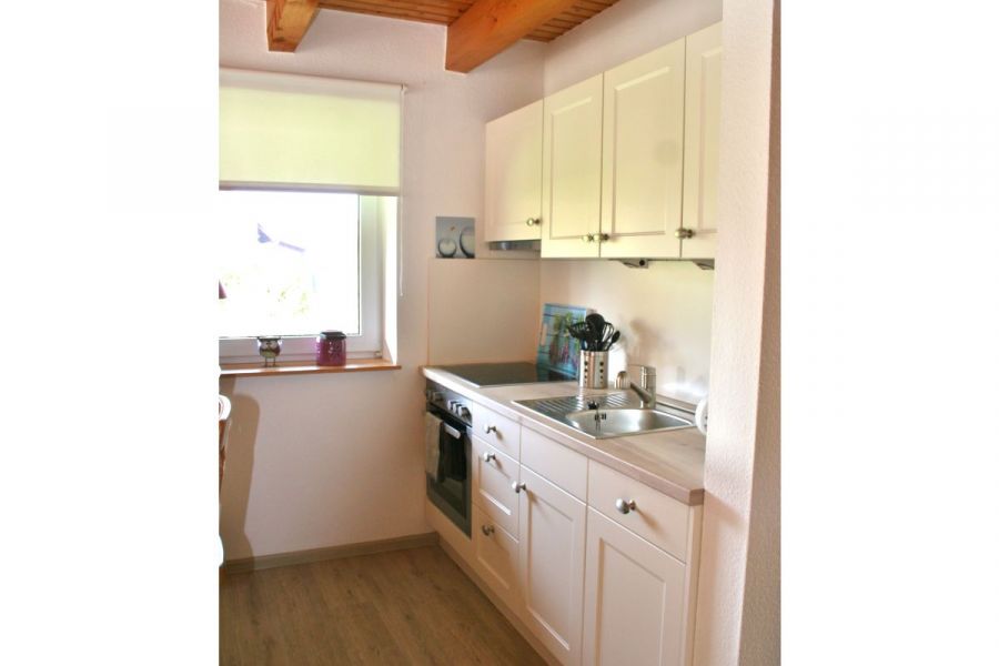 Im Erdgeschoss befindet sich der Wohn- und Essbereich mit TV und DVD-Player, die gut ausgestattete Küchenzeile und das Badezimmer mit Dusche. Die beiden Schlafzimmer, eines mit Doppelbett und eines mit zwei Einzelbetten, sowie ein Kinderreisebett und ein Gäste-WC mit Waschmaschine befinden sich im Dachgeschoss. Alle Schlafräume sind mit Außenjalousien ausgestattet. . Ein PKW-Stellplatz ist direkt am Haus.