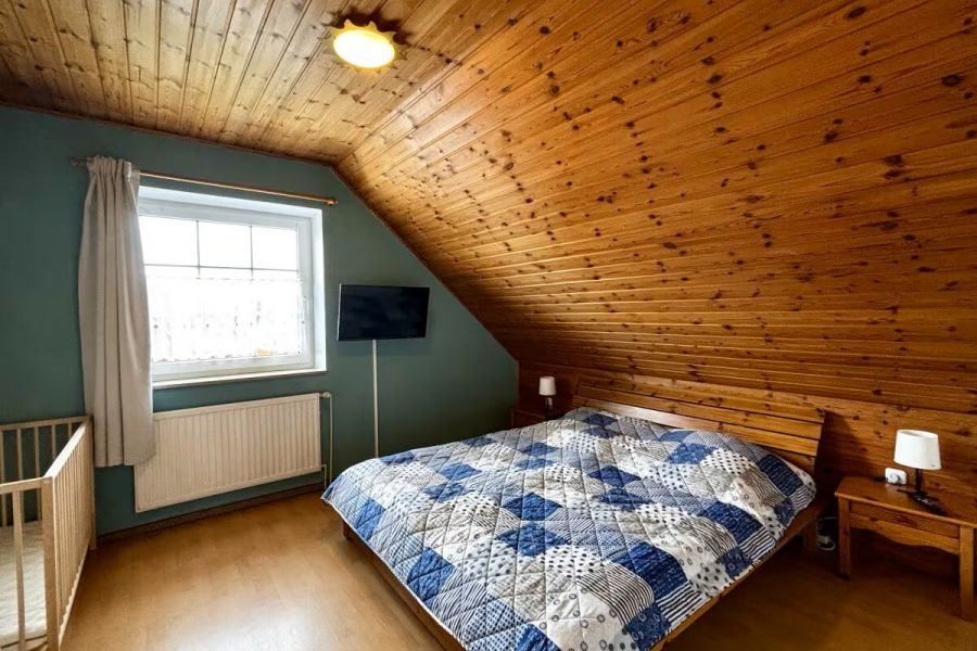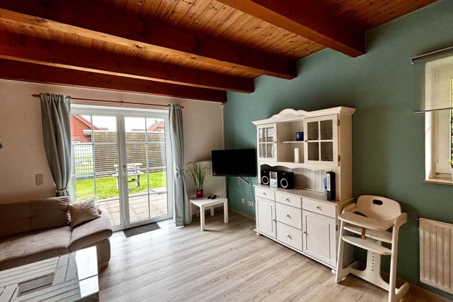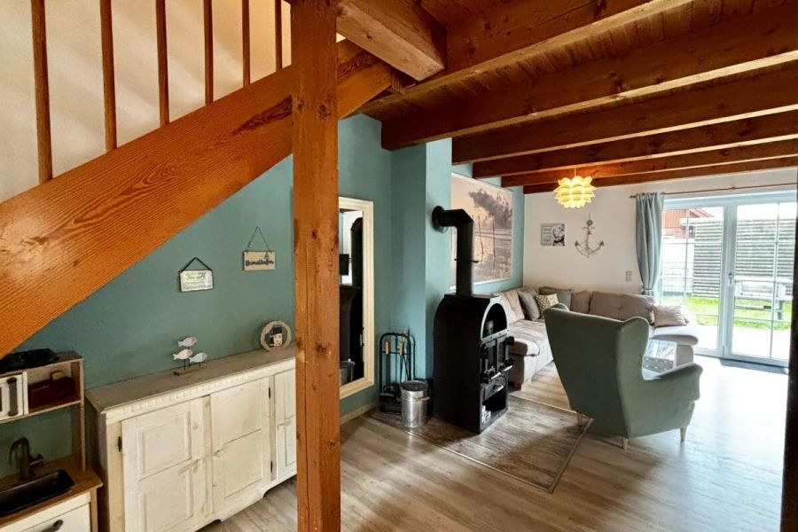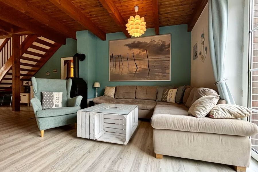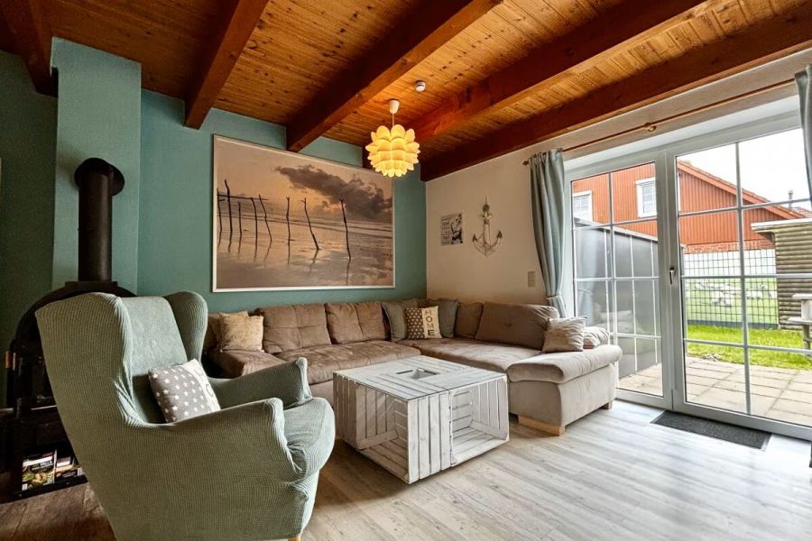 Das Ferienhaus „Friesenstorch“ ist eine toll eingerichtete Doppelhaushälfte mit einer Wohnfläche von ca. 65m². Im Erdgeschoss befinden sich der Wohn- und Essbereich mit offener Küche und direktem Zugang auf die Terrasse, und das Badezimmer mit Waschmaschine. Der Kaminofen im Wohnbereich sorgt in den kalten Wintermonaten für eine reichlich Wohlfühlatmosphäre. Über eine Holztreppe gelangen Sie in das Dachgeschoss des tollen Ferienhauses. Hier steht Ihnen ein Schlafraum mit einem Doppelbett und weiteres Schlafzimmer mit Einzelbett und einem Tandembett (für 2 Personen) zur Verfügung. Für kleinere Kinder haben wir einen Kinderhochstuhl, einen Wickeltisch und ein festes Kinderbett. Das Ferienhaus hat einen eingezäunten Garten mit Terrasse, nebst Gartenmöbeln.