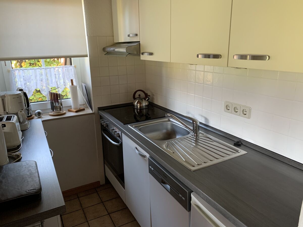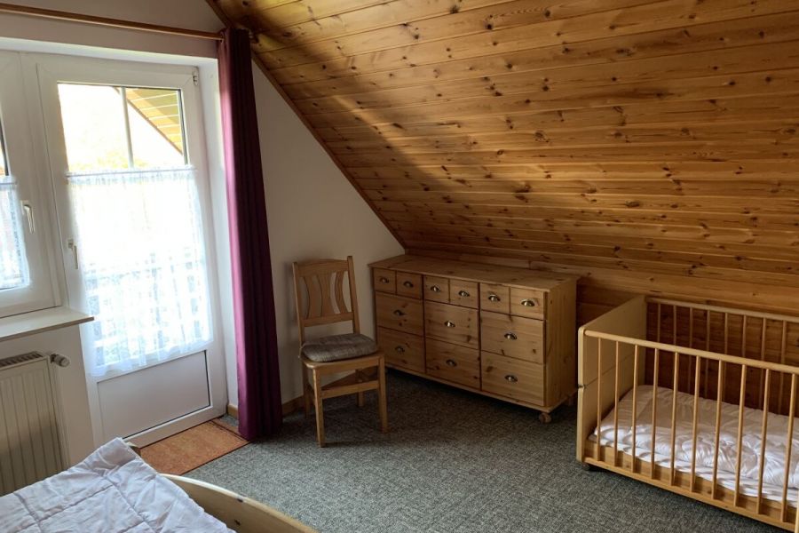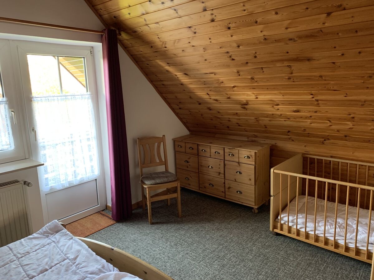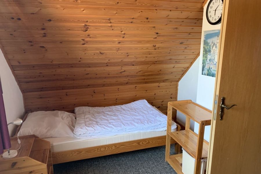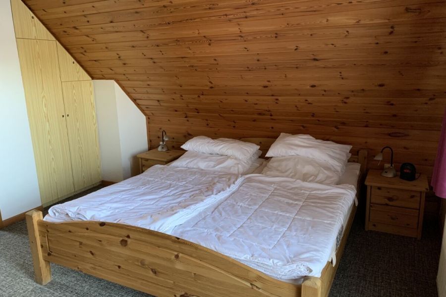 Im unteren Bereich befindet sich der Wohn-und Essbereich mit anliegender gut ausgestatteter Küchenzeile. Weiter Im Erdgeschoss befindet sich ein Badezimmer mit Dusche und Waschmaschine sowie ein Schlafzimmer mit einem Hochbett. Zwei weitere Schlafräume, eines mit Doppelbett und eines mit zwei Einzelbetten, sowie ein Kinderreisebett und ein Gäste-WC sind in der 1.Etage. Highlight ist die Hauseigene Sauna.