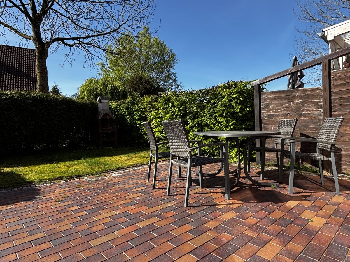 Im Außenbereich des Ferienhauses steht Ihnen ein Garten mit Terrasse, einem Außenschuppen für Fahrräder und ein Grillkamin zur Verfügung.