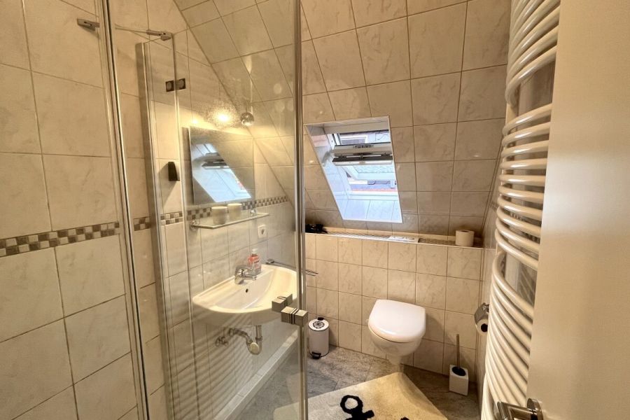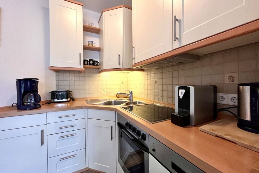 Das Ferienhaus „Josie“ ist ein Reihenmittelhaus mit ca. 80 m² Wohnfläche. Das Erdgeschoss ist wie folgt aufgeteilt: offener Wohn- und Essbereich gut ausgestatteter Einbauküche und Zugang auf die Terrasse mit Grillkamin, Gäste-WC mit Waschmaschine und Flur. Im Wohnbereich steht Ihnen ein Flachbildfernseher zur Verfügung. Auch die sehr gut ausgestattete Küche lässt keine Wünsche offen. Über eine Treppe gelangen Sie in das Dachgeschoss des Hauses. Hier befinden sich das Elternschlafzimmer mit großem Doppelbett, Kleiderschrank und Fernseher, ein Kinderzimmer mit zwei Einzelbetten und Kleiderschrank, ein Badezimmer mit Dusche und ein Abstellraum.