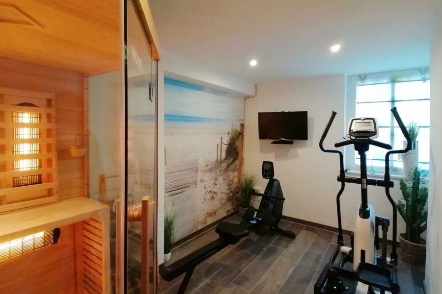 Die Ferienwohnung Backbord liegt in der ersten Etage eines Einfamilienhauses, zentral in Horumersiel und bietet bis zu 4 Personen ausreichend Platz für einen erholsamen Urlaub. Eine Sitzgruppe steht Ihnen im Vorgarten zur Verfügung. Die Ferienwohnung verfügt über ein separates Schlafzimmer mit Doppelbett und Schminktisch. Zusätzlich gibt es hier ein Kinderbett. Das Badezimmer wurde komplett saniert und verfügt über Fußbodenheizung, Dusche und WC. Eine eigene Waschmaschine in der Wohnung steht Ihnen kostenfrei zur Verfügung. Das Wohnzimmer verfügt über TV mit DVD-Player, eine Stereoanlage, kostenfreier W-LAN-Anschluss, sowie eine integrierte, sehr gut ausgestattete Küche (Backofen, Geschirrspülmaschine, Mikrowelle, Kühlschrank mit Gefrierfach). Die Ferienwohnung ist hell und modern eingerichtet. Die Fenster verfügen über Außenrollos. Im Außenbereich befindet sich ein kleiner Fitnessraum mit hochwertigen Geräten und eine Infrarotsauna. Ein TV-Gerät und WLAN ist ebenfalls vorhanden und steht Ihnen kostenlos zur Verfügung. Zum Strand und in den Ort gelangen Sie in nur wenige Minuten zu Fuß. Ein Parkplatz befindet sich direkt vor dem Haus. Haustiere sind nicht gestattet!