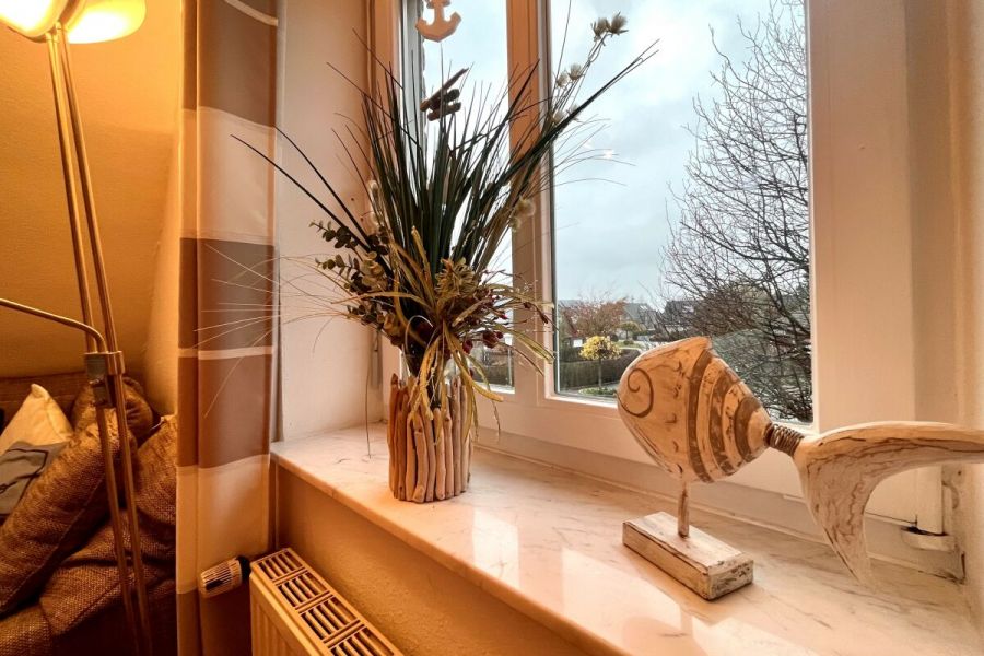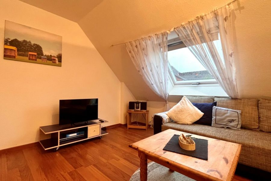 Die ruhig gelegene Ferienwohnung in der ersten Etage eines Zweifamilienhauses hat einen abgeschirmten Sitzplatz im Garten. Die Wohnung, besteht aus einer Wohnküche, einem Wohnzimmer, sowie einem separatem Schlafzimmer mit komfortablem Boxspringbett und einem Badezimmer, dass im Frühjahr 2018 komplett saniert und mit Fußbodenheizung ausgestattet wurde. Zusätzlich steht Ihnen ein Kinderbett zur Verfügung. Die gesamte Wohnung ist hell, freundlich und mit Liebe zum Detail eingerichtet! Die Couch im Wohnzimmer lässt sich ausziehen und bietet zusätzlich für 2 Personen einen Schlafplatz. Im Außenbereich befindet sich ein kleiner Fitnessraum mit hochwertigen Geräten und eine Infrarotsauna. Ein TV-Gerät und WLAN sind ebenfalls vorhanden und steht Ihnen kostenlos zur Verfügung. Zum Strand und ins Dorf sind es nur wenige Minuten zu Fuß.